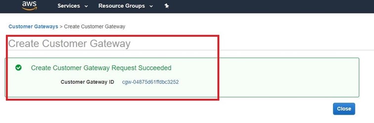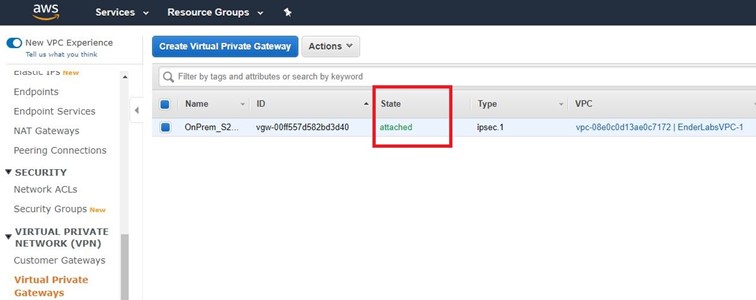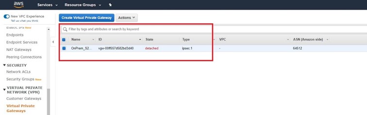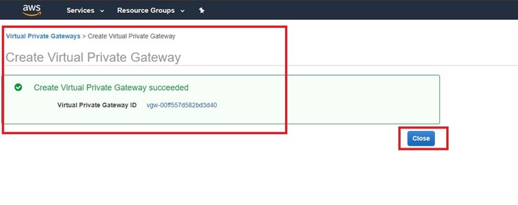 Virtual Private Gateway oluşturma işlemimiz bitmiştir.