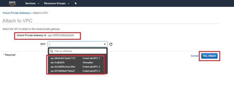 İstediğimiz VPC’yi seçip Attach işlemini yapıyoruz.