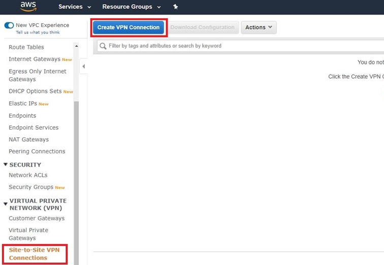 Site-to-Site VPN Connections VPN bağlantısının yapıldığı kısım.