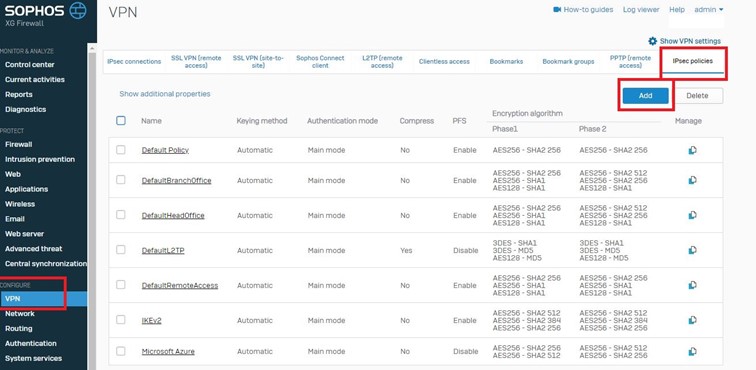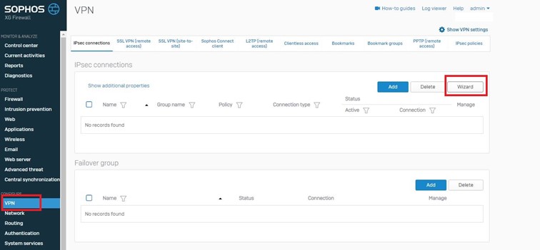 Firewall üzerinden IPsec connections kısmına gelerek VPN oluşturma Wizard’ını başlatıyoruz.