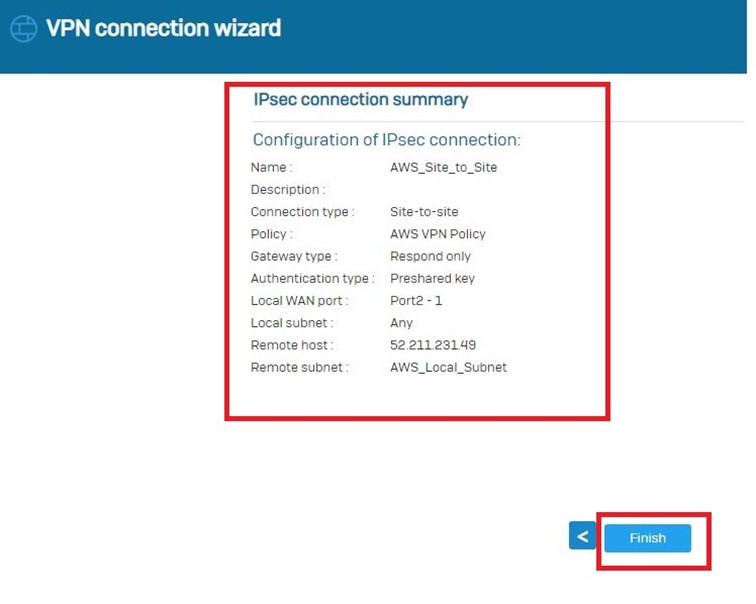 Opsiyonel olarak belirleyeceğimiz bir ayar varsa burada yapıyoruz ve Create VPN Connection oluşturma işlemini bitiyoruz.