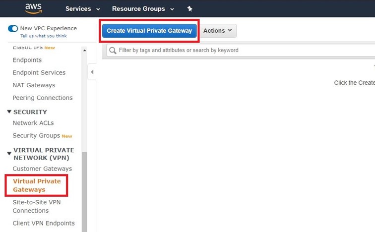 Create Virtual Private Gateway oluşturma ile devam ediyoruz.