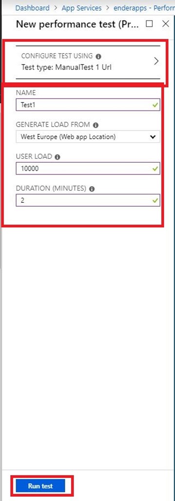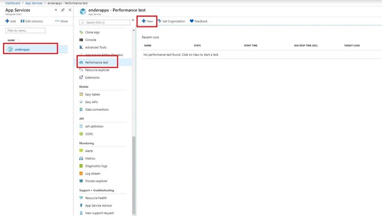 1.Test yapacağımız App Service’e gelerek Performans test kısmına geliyoruz.Ardından bir adet test ekleyerek devam ediyoruz.
