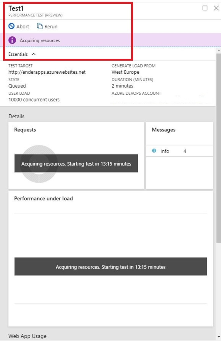 4.Testin başlaması için gerekli olan kaynakların hazırlanmasını bekliyoruz.Bu süre yapacağınız yüklenme sayısına göre farklılık gösterebilir.Ben ortaya bir sonuç çıksın diye kaynak gereksiniminden fazla bir istekte bulundum.