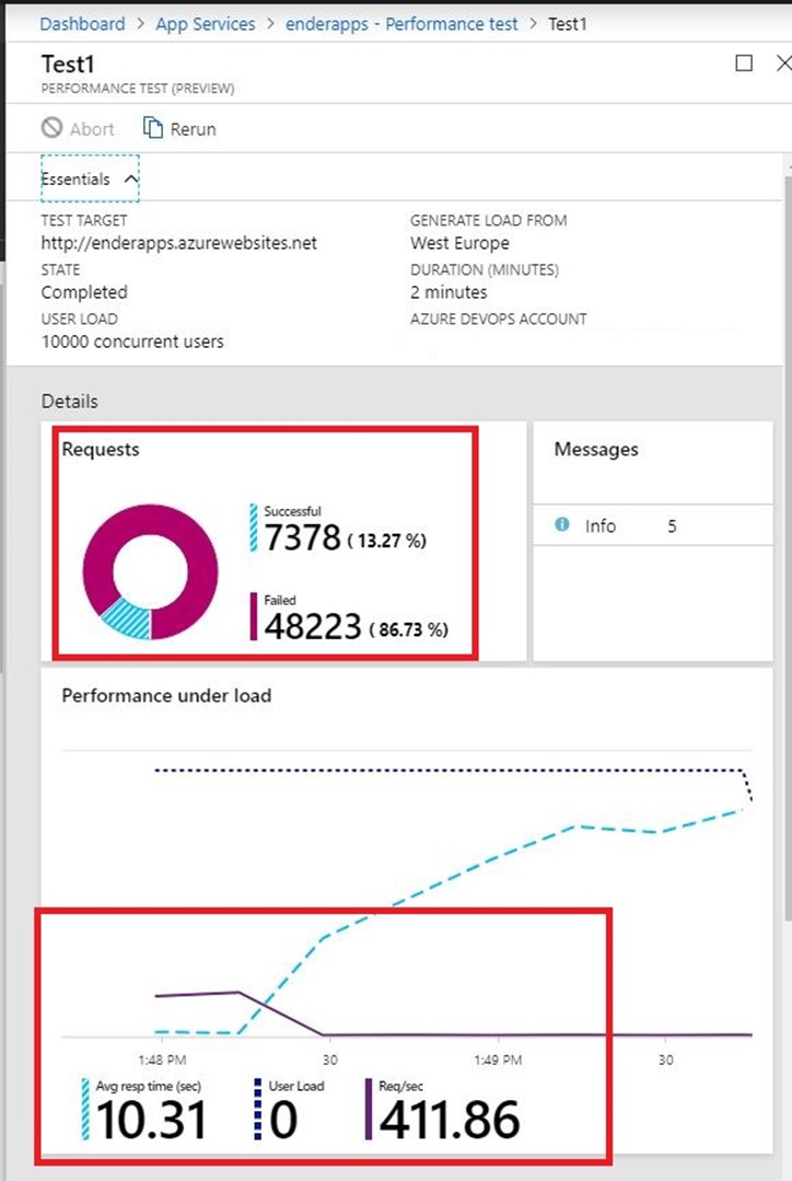 6.Teste ait olan fail olmuş istekler ve başarılı olan istekleri görebiliyoruz.İsteklere cevap süresi ve performans bilgilerini gözlemleyebiliyoruz.Bu sayede doğru olan App Service Plan’ı seçerek uygulamalarımız için yüksek erişilebilirlik sağlamış oluyoruz.