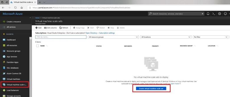 Açılan menü de Create virtual machine scale set diyerek VMSS oluşturmaya başlıyoruz.