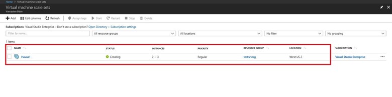 5.VMSS oluşturma işlemimiz başladı.Oluşturulacak VM miktarına göre havuzun oluşturulması zaman alabilir.