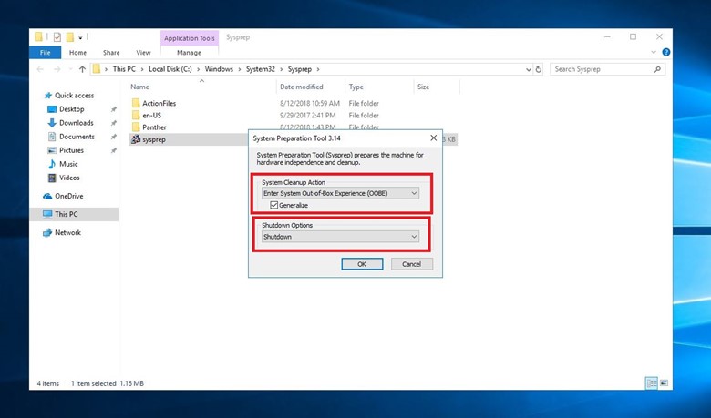 1.Capture yapacağımız VM’in içine giriyoruz ardından makineyi Sysprep’leyip kapatıyoruz.Sysprep ayarlarını resimdeki şekli ile yapabilirsiniz.