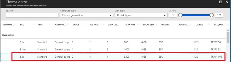 7.Oluşturacağımız VM’in gerekli özelliklerini belirleyerek oluşturma işlemini başlatıyoruz.